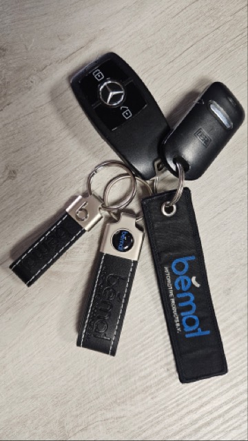 • Sleutelhangers: Verkrijgbaar in leer, metaal of kunststof, met of zonder logo.